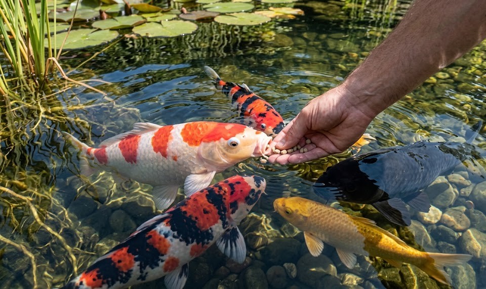 Zwykły granulat bywa nudny. Aby przełamać pierwsze lody, musisz zaoferować rybom coś, czemu po prostu nie będą w stanie się oprzeć. Suszone jedwabniki (silkworm) to absolutny przysmak Koi. Świetnie sprawdzają się też kawałki soczystego arbuza, parzona sałata czy krewetki. Oczywiście wysokiej klasy granulat również działa, ale to właśnie zapachowe przysmaki najszybciej skracają dystans. Dobierając takie frykasy, zgłębiasz jednocześnie