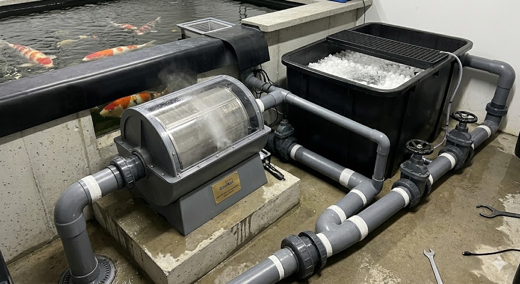 Filtr to najważniejszy wydatek. Zasada jest prosta: kup największy i najlepszy, na jaki Cię stać. Dla karpi Koi filtr musi być przewymiarowany (często liczy się go podwójnie w stosunku do zwykłych oczek).