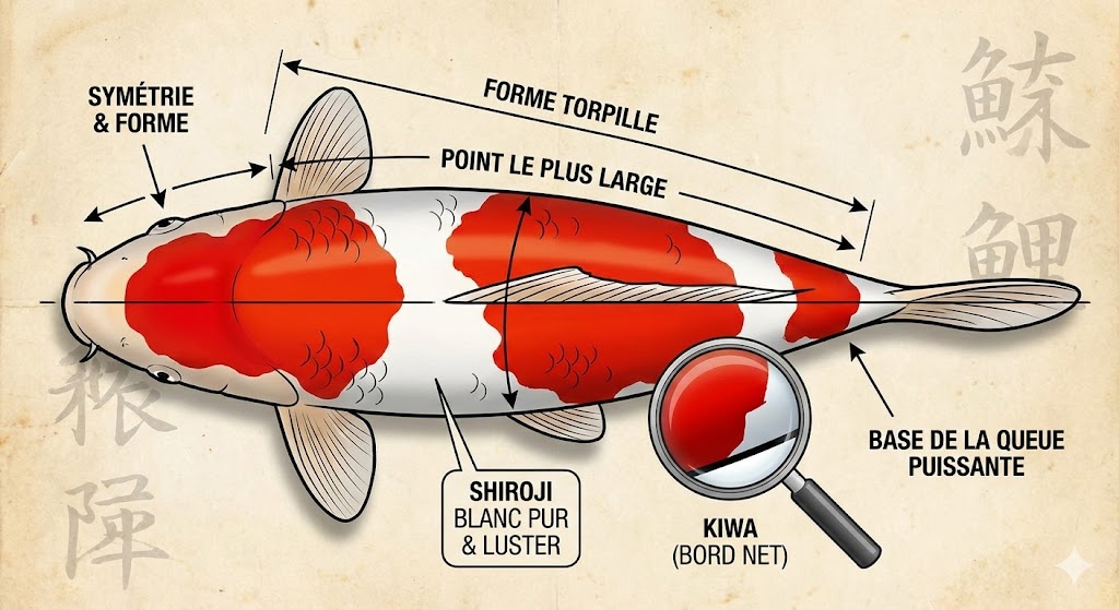 Japońscy hodowcy powtarzają starą zasadę: "Najpierw budowa, potem skóra, na końcu wzór". Dlaczego? Ponieważ wzór może się zmieniać, a budowa ciała jest stała i determinuje zdrowie oraz majestatyczny wygląd ryby w przyszłości.